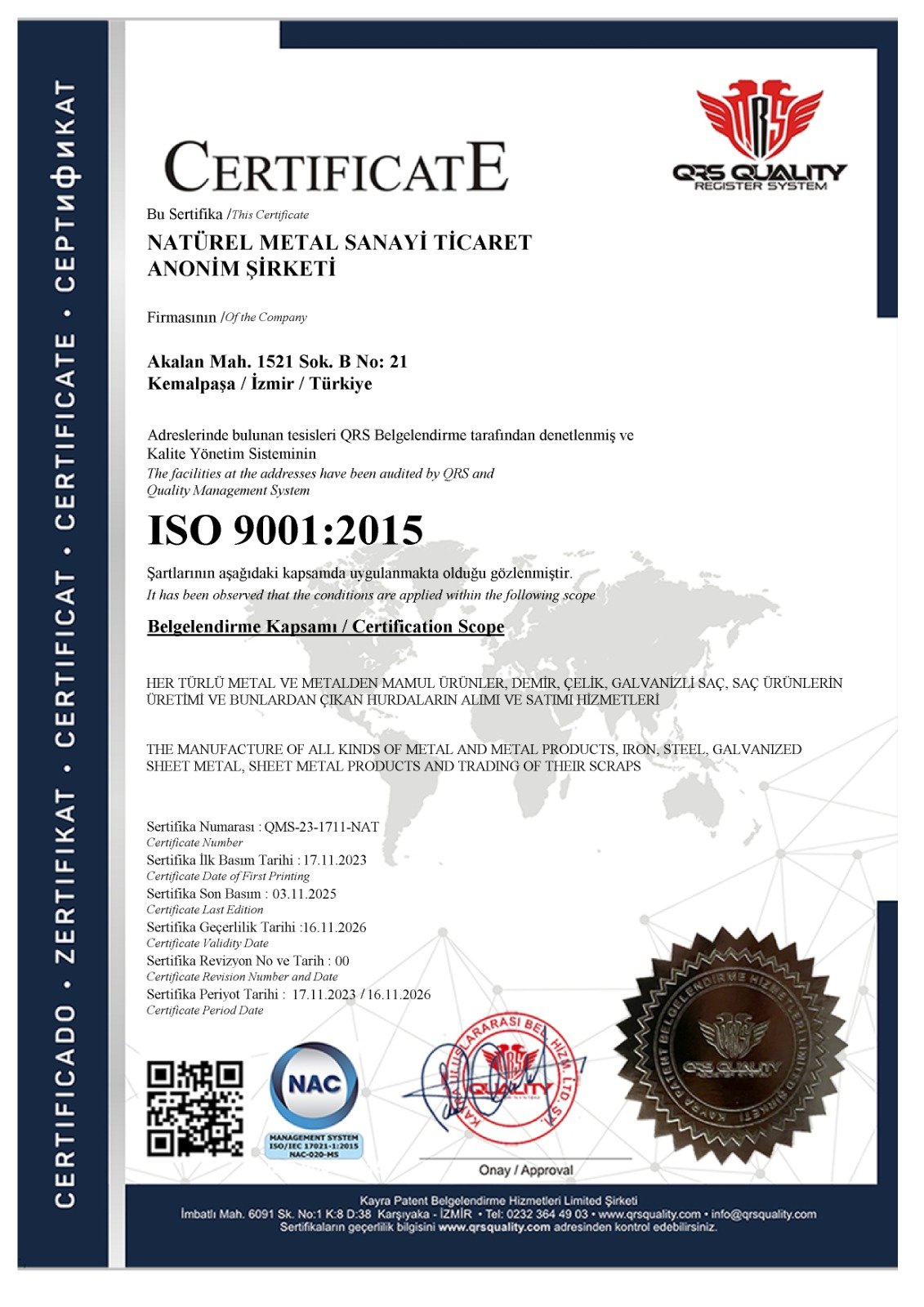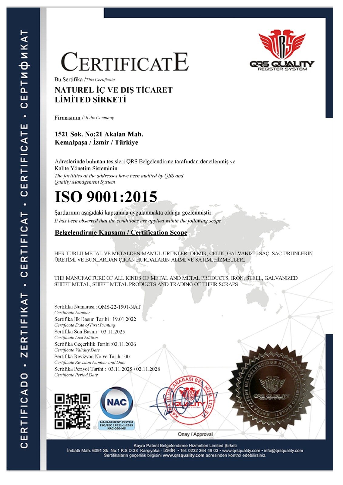 Naturel Metal is a manufacturer and exporter based in İzmir, Turkey, with over 40 years of experience in global trade. Our journey is built on craftsmanship, innovation, and a strong commitment to quality.